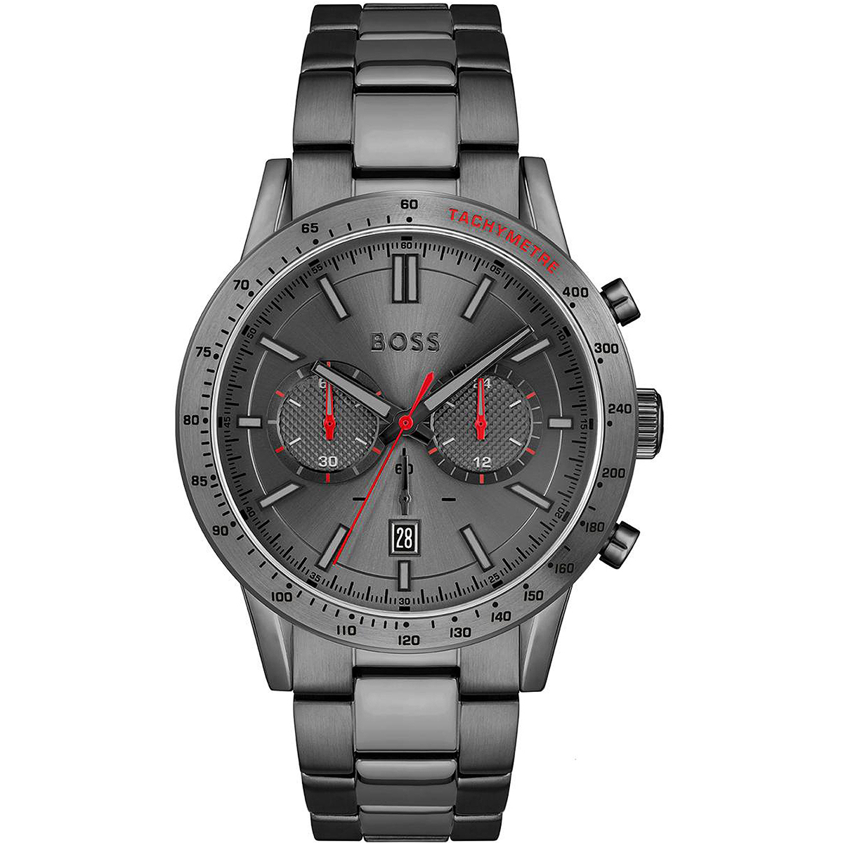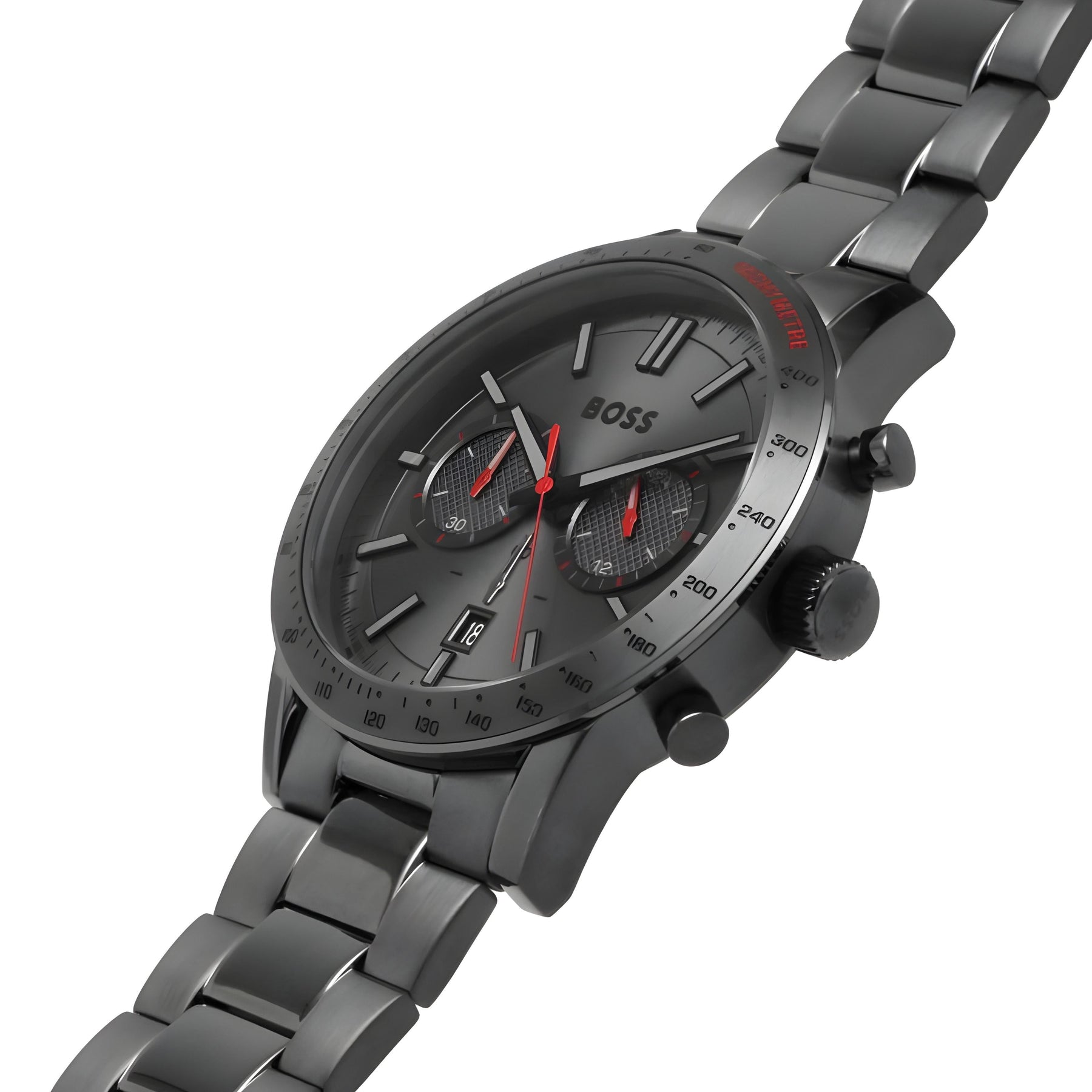 The BOSS Allure Men's Watch is a sleek and sophisticated timepiece, featuring a stainless steel full gray design. With precision and durability, this watch is perfect for any professional setting. Enhance your style and always arrive on time with the BOSS Allure Men's Watch.