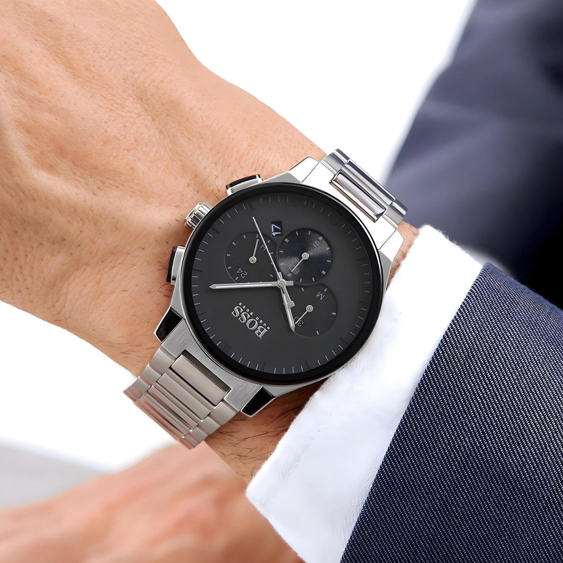 This BOSS Chronograph Quartz Watch for Men with black dial will complete any look. It features a stylish black dial with three sub-dials and a date window for precise timekeeping. This watch offers a classic yet sophisticated look that will be sure to turn heads.